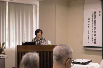 講師に作家の中尾ちゑこさんを迎え、著書「崩壊 国際流通グループヤオハン もう一つの姿」を題材に、熱海発祥の青果店から世界進出を果たした「ヤオハン」の歴史を振り返った。
