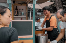 3周年イベントでは、屋台や立食パーティーが開かれ、地域住民らが集まり、にぎやかなひとときを過ごした。本棚オーナーでもあり、有名洋食店「ぱなしぇ」(同)の店主・勝亦俊文さんが特製の「牛すじカレー弁当」を限定100食用意。販売開始と同時に飛ぶように売れる人気ぶりだった。勝亦さんは「この日のために5時間かけて煮込んだ。映画関係者へのロケ弁として30年近く作り続けてきた『映画飯』の味を楽しんでもらいたかった。これからも地域でのんびり店を続けていけたら」と笑顔を見せた。