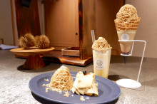 テイクアウト商品は、「利平モンブランフラッペ」(1,180円)、「生糸モンブランソフトクリーム」(980円)を新たに販売する。