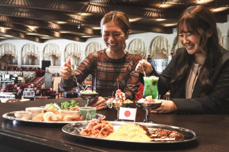 フェアは、館内の「メインダイニング錦」で提供するランチタイムのハーフビュッフェで行う。メインディッシュとして、昭和の洋食文化の定番料理を追加した。大人のお子さまランチをイメージし、ナポリタンとオムライスビーフシチューソースを盛り合わせた「プレートA」と、昭和の家庭の味をイメージし、豚のしょうが焼きやえびフライ、ハムカツなどを盛り付けた「プレートB」の2種類。いずれのプレートにも、バニラアイスとサクランボをのせたクリームソーダがセットで付く。
