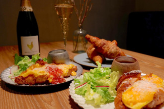 シリーズ第1弾として、パフェで培った構成力と素材使いを生かし、イクラやトリュフ、3種の卵を組み合わせた「クロワッサンサンド」を提供。本格的な食事メニューへ踏み出す初の取り組みとなる。
