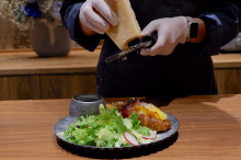 仕上げにチーズを削って提供するクロワッサンサンド「Oeuf “Caviar”」(関連画像4枚)