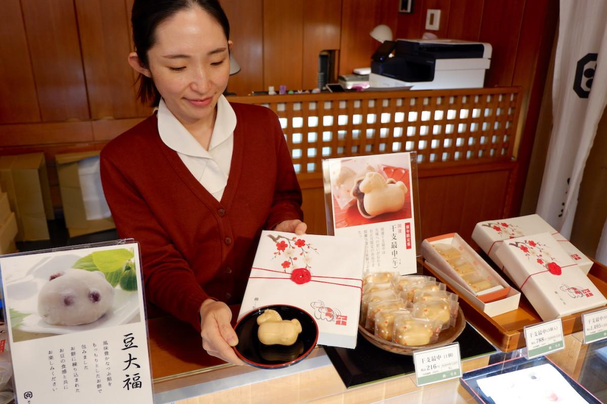 贈答用の箱入りも販売する干支最中