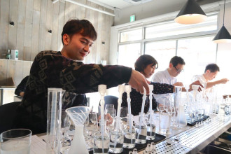 バー併設のクラフトジン蒸留所「SEACLIFF(シークリフ)熱海蒸溜(じょうりゅう)所」(熱海市清水町)が2月22日、オリジナルのクラフトジンを作る体験プログラム「マイブレンド・ジン・セミナー」を行った。