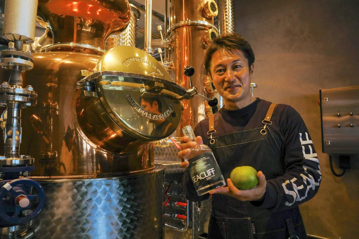 クラフトジンを製造する「SEACLIFF(シークリフ)熱海蒸溜所」(熱海市清水町)が11月29日、新シリーズ「SEASONAL EDITION(シーズナルエディション)」の第1弾として、青ダイダイをテーマにしたクラフトジン「AODAIDAI(青橙)」の販売を始めた。