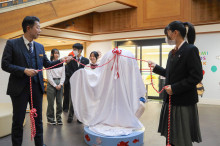 熱海の宿泊施設「亀の井ホテル熱海」(熱海市水口町2)で11月28日、創業者・油屋熊八をかたどったブロンズ像の除幕式が行われた。