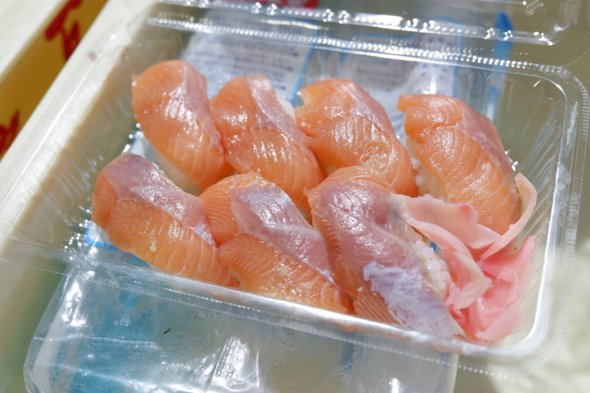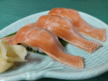 熱海魚市場の土曜夜市で販売されたサクラマスのすし
