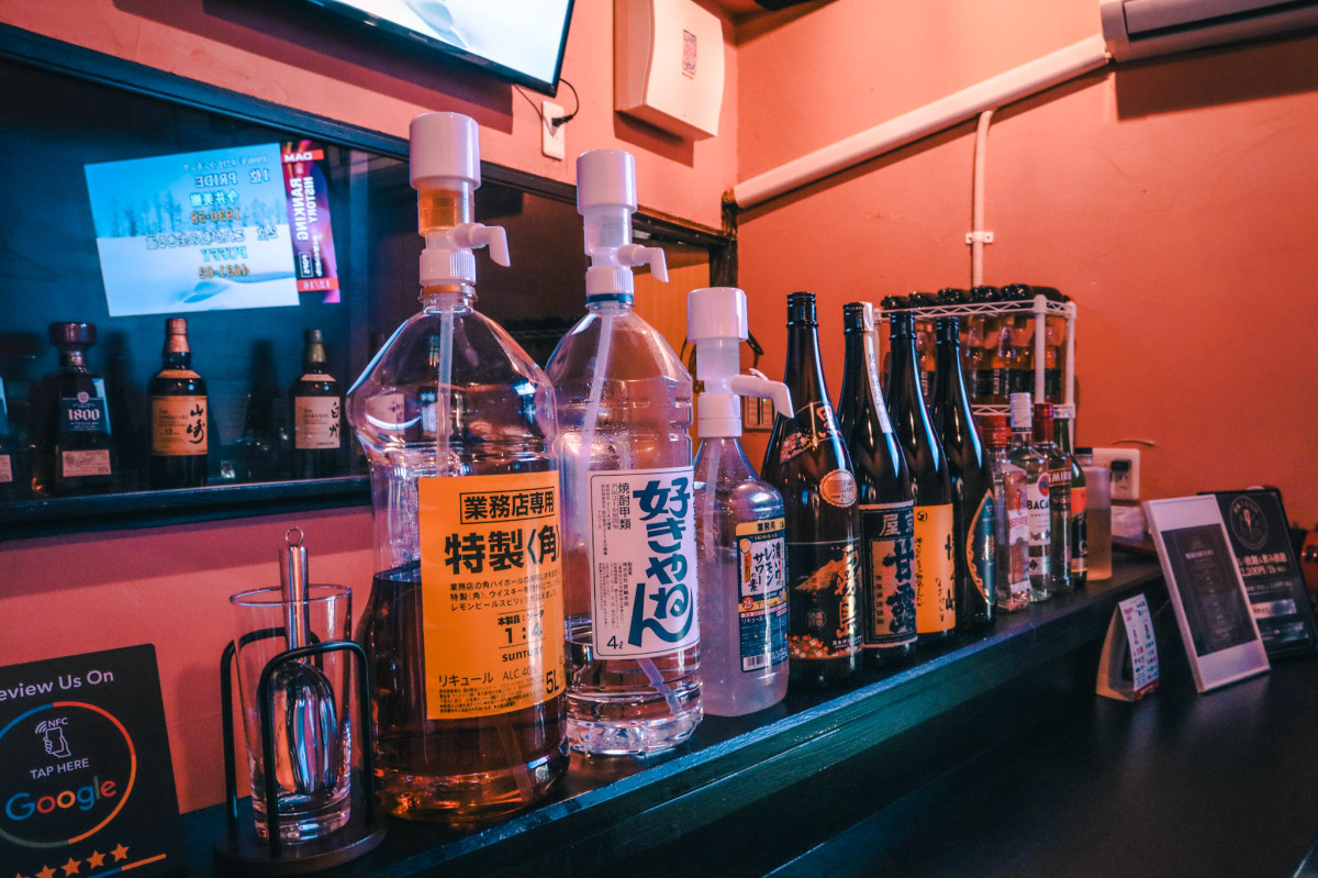 焼酎やウイスキーなどを用意