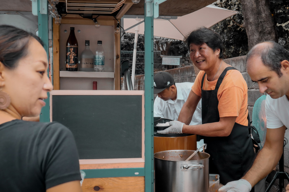洋食店「ぱなしぇ」の店主・勝亦俊文さん特製の「牛すじカレー弁当」を販売