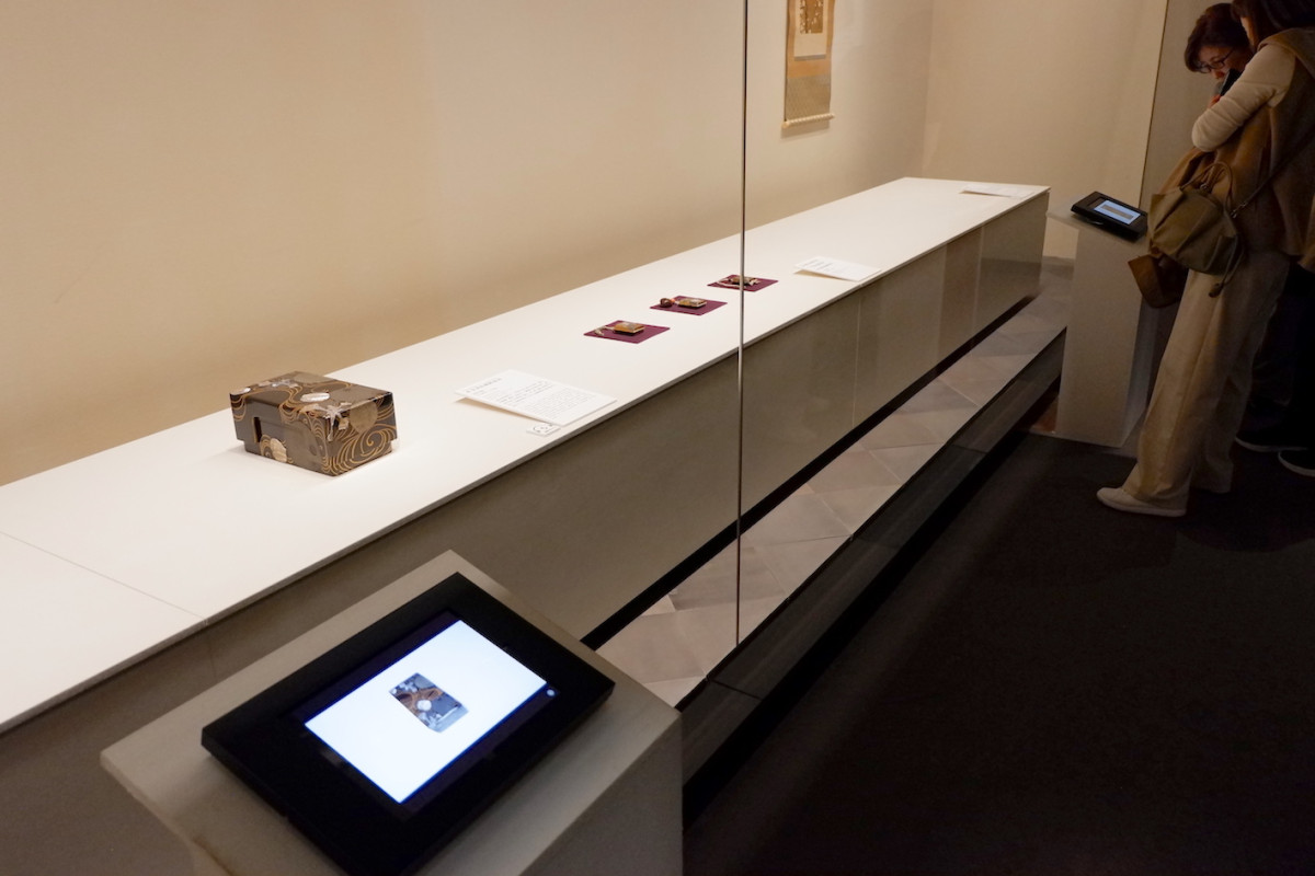 「琳派デザイン」展では作品の内側などを動画で紹介するモニターも設置