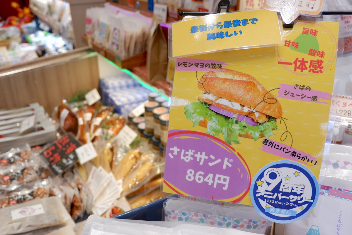 「あをきのひもの本店」では各日限定10個で「さばサンド」を販売する