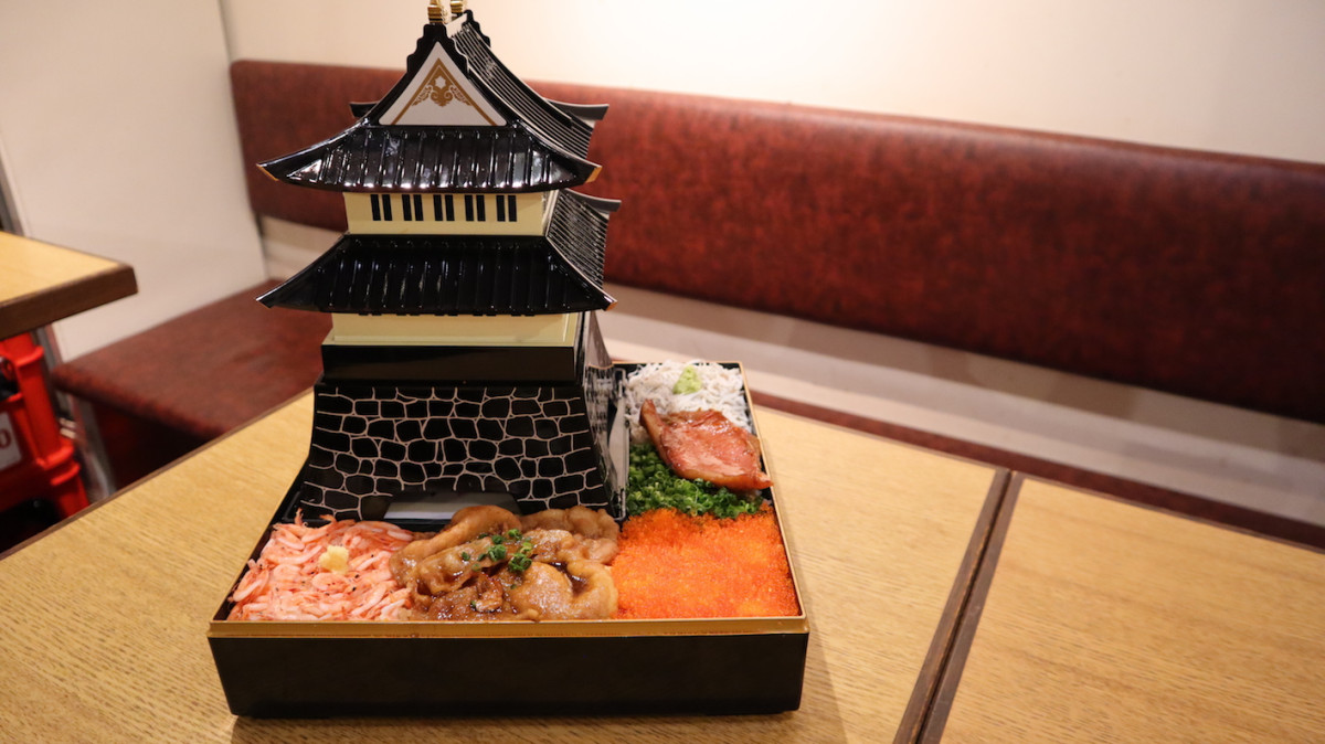 海鮮飲食店「熱海銀座おさかな食堂」(熱海市銀座町)を運営する夢タカラ(咲見町)が1月22日、観光施設「熱海城」(熱海)と初めてのコラボ企画「腹が減っては戦はできぬ!」キャンペーンを始めた。