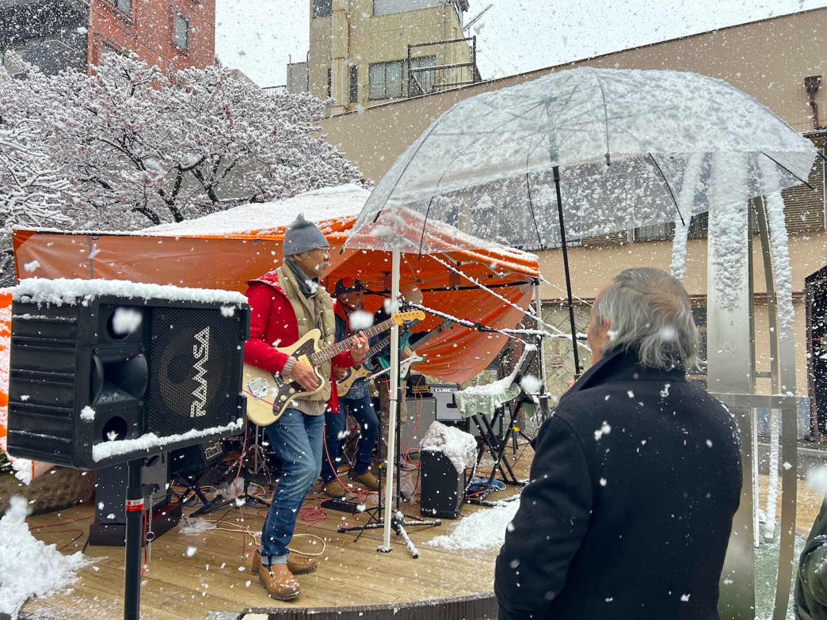 強い寒気の流れ込みの影響で2月8日、熱海市内は雪に見舞われ、市街地でも積雪が確認された。