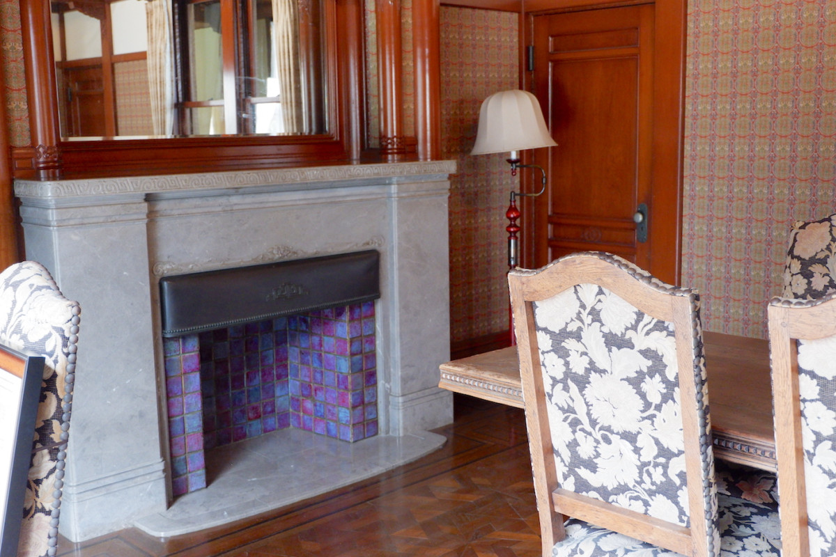 起雲閣の洋室「玉姫」の暖炉も「泰山タイル」を使う