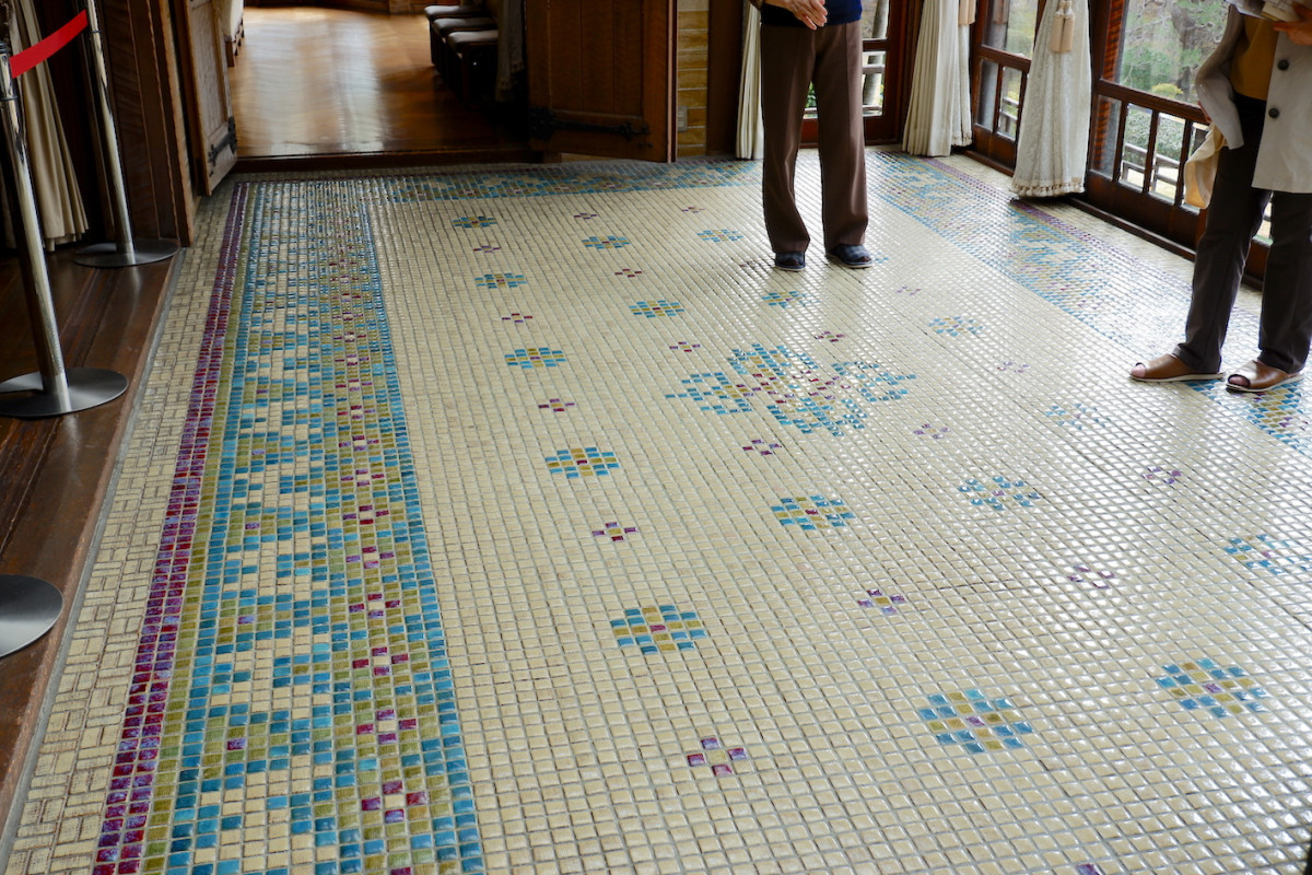 起雲閣の洋室「玉姫」のサンルームにある「泰山タイル」