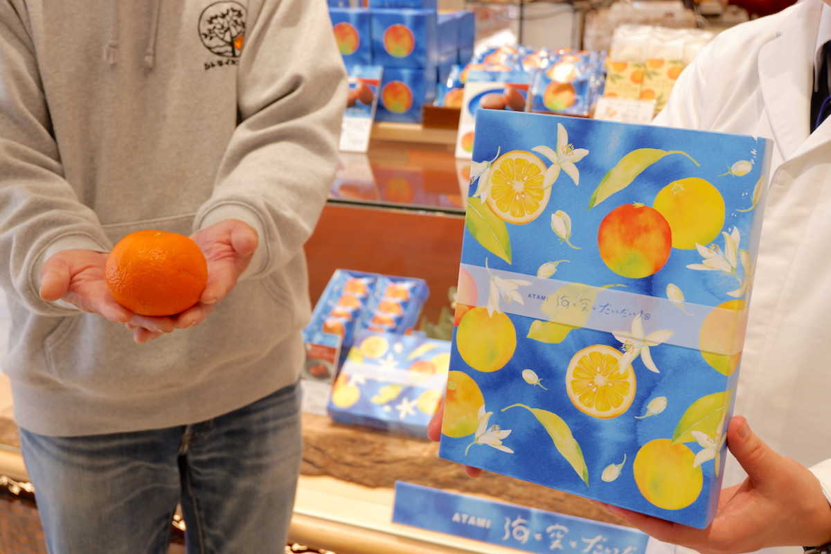 熱海特産のかんきつ「ダイダイ」を使った新商品「ATAMI 海と空とだいだい畑」の販売が3月7日、和菓子店「石舟庵」の熱海市内の店舗などで始まった。